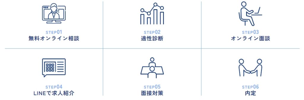 個々の特性やスキルを把握することで、それを活かせる職種や業界を特定、求人紹介やキャリアフェアなどの手段を活用し、適切な転職先を見つけるお手伝いをします。